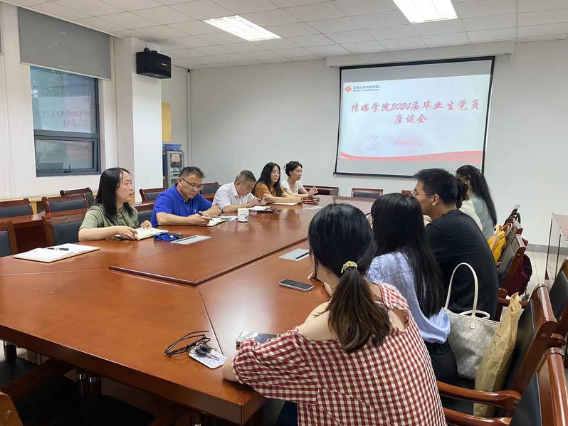 为进一步强化毕业生党员理想信念教育,激励党员同志们毕业后自觉服务社会、奉献社会,在新的岗位上继续发挥好党员模范带头作用。6月21日上午,传媒学院党委在学院楼学术会议中心举行了2024届毕业生党员座谈会。传媒学院党委书记张健,党委副书记、副院长丁姗,专职组织员丁新红,本科生党支部书记宋智,毕业年级辅导员朱飞以及2024届毕业生党员代表参加了会议。会议由丁姗主持。