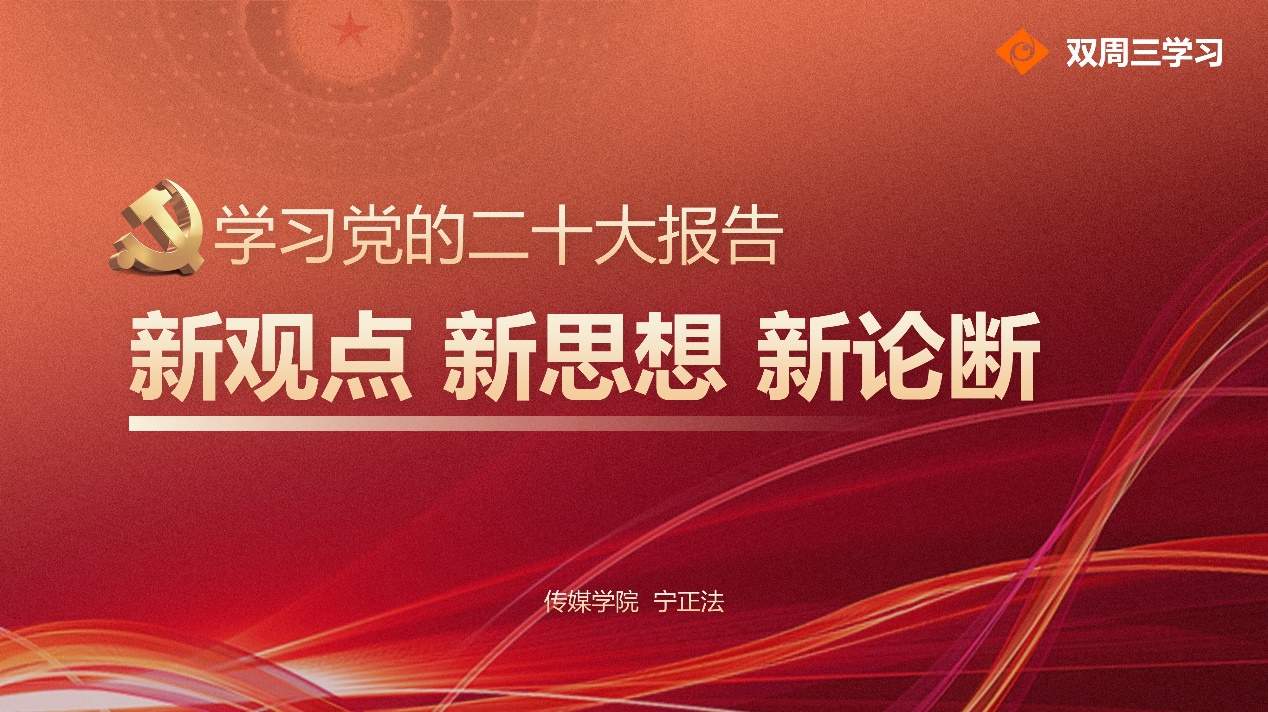 10月26日下午,传媒学院组织教职工通过微信群等线上方式开展“双周三”政治学习,由学院党委书记宁正法作辅导报告:“学习党的二十大报告——新观点新思想新论断”。