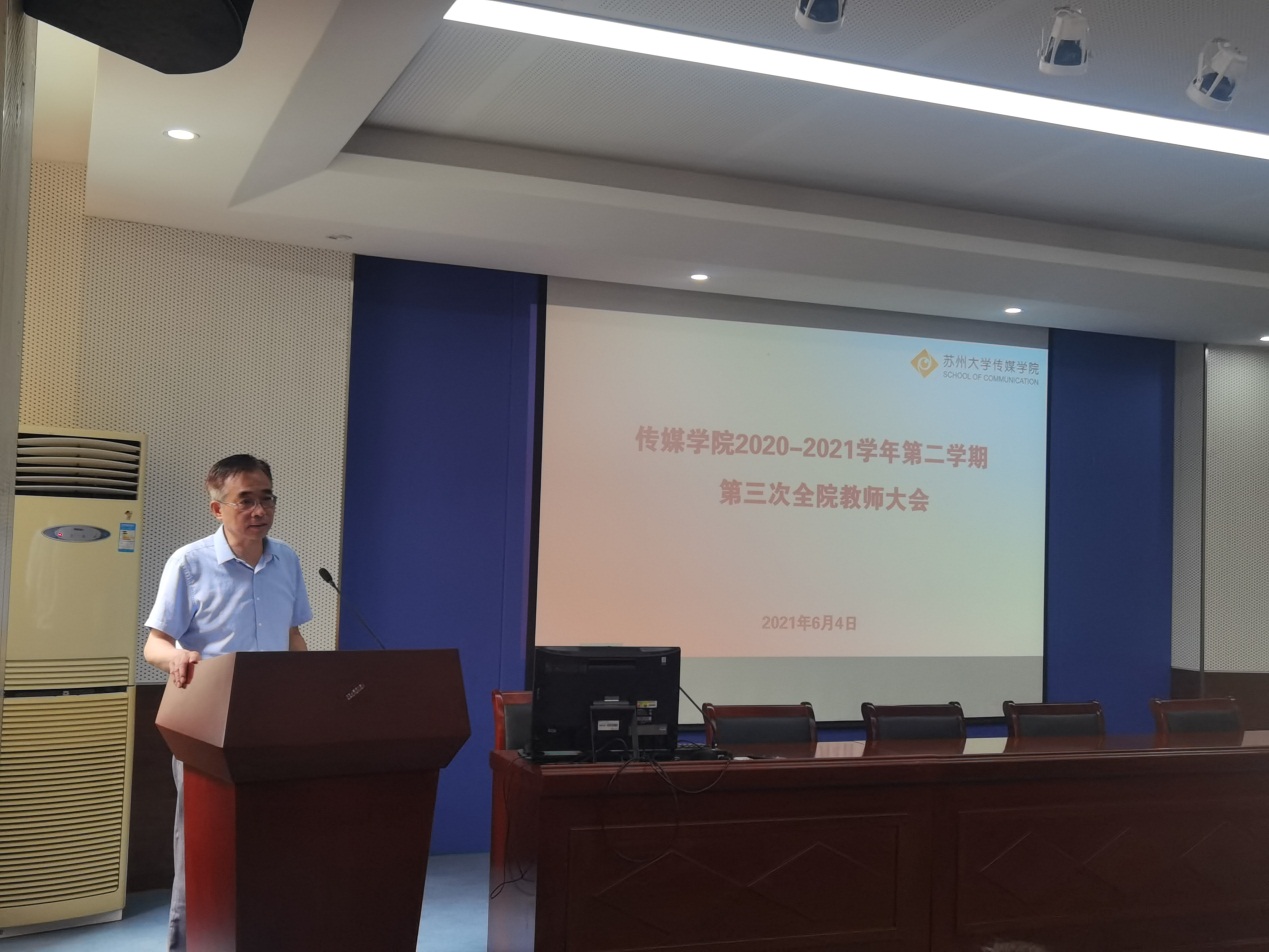 为进一步加强党史学习教育,推动学院高质量发展,6月4日下午,传媒学院2020-2021学年第二学期第三次全院教师大会在5148会议室举行。学院全体教师出席本次会议。学院党委书记宁正法主持会议。