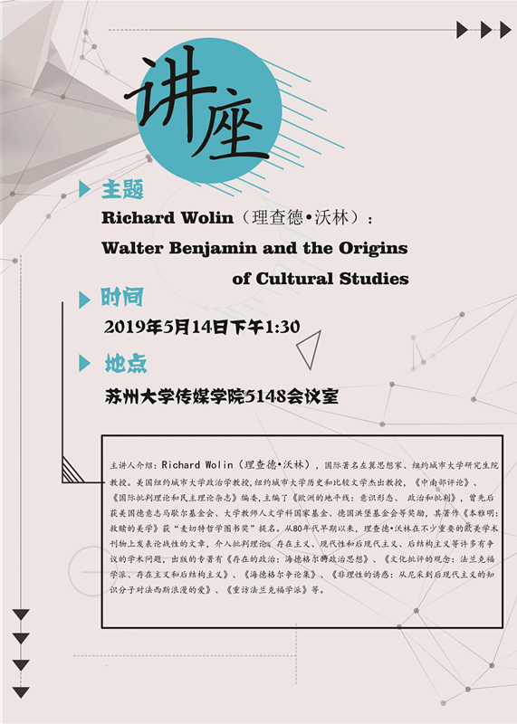 学术讲座:沃尔特.本雅明与文化研究的起源