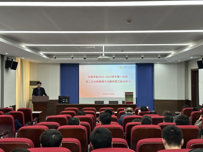 11月9日下午,传媒学院2022-2023学年第一学期第二次全院教师大会暨双周三政治学习在学院5148会议室召开。学院全体教师出席本次会议。会议由学院党委书记宁正法主持。