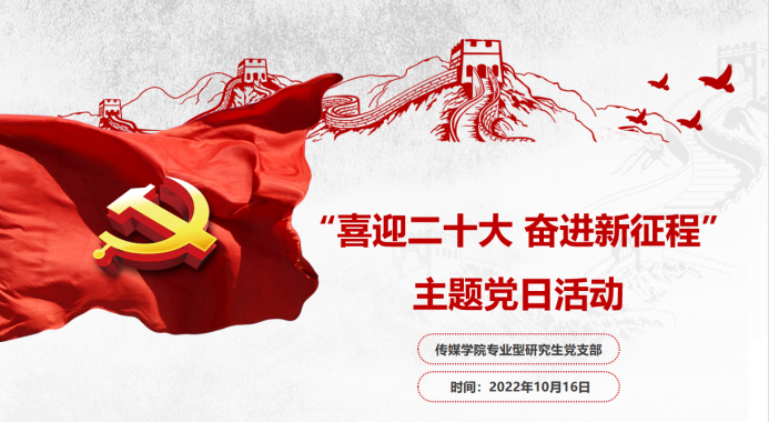 思想之旗领航向,人间正道开新篇。自中国共产党第二十次全国代表大会召开以来,传媒学院专业型研究生党支部靠前站位,主动作为,通过组织自主理论学习、主题党日、知识竞赛等形式,迅速掀起学习宣传贯彻党的二十大精神热潮。