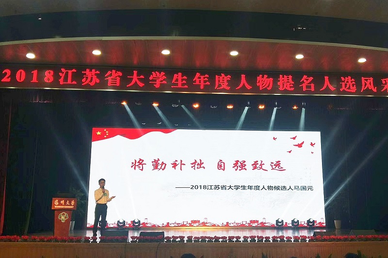 为深入学习宣传贯彻习近平新时代中国特色社会主义思想和党的十九大精神,积极培育和践行社会主义核心价值观,弘扬“中国梦”时代主旋律,宣传表彰大学生先进典型,“2018年江苏省大学生年度人物提名人选”风采展评活动于5月25日在扬州大学荷花池校区举行。传媒学院马国元同学作为2018年江苏省大学生年度提名人物进行风采展评,苏州大学学生处副处长潘爱华,传媒学院副书记、副院长夏凤军等一行16人作为苏州大学代表前往现场进行观摩。