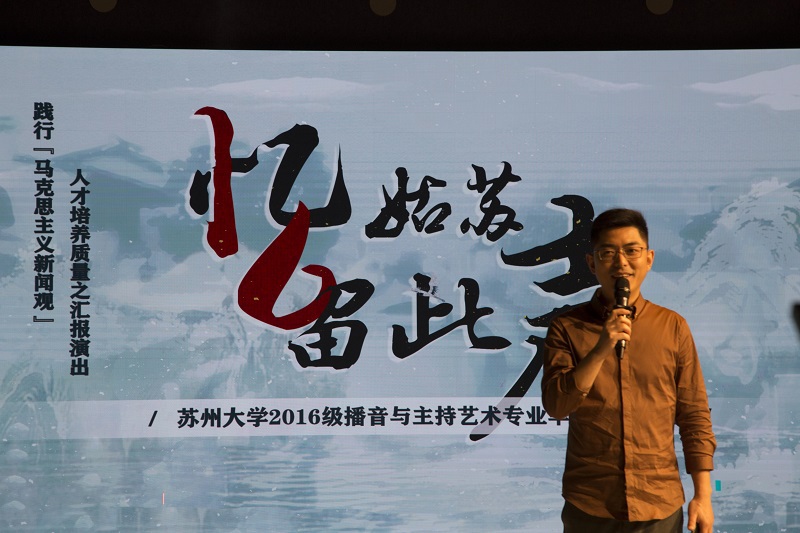 6月20日上午,“忆姑苏 留此声”——践行“马克思主义新闻观”人才培养质量之汇报演出暨苏州大学2016级播音与主持艺术专业汇报演出在传媒学院大演播厅拉开序幕。江苏省广电总台主任编辑郭新文,苏州广电总台《新闻夜班车》主播杨冰,《幸福来敲门》大型综艺节目主持人潘磊,《苏州新闻》主播马绍元,苏州市语言学会副会长、苏州科技大学语委办主任王玲玲,苏州大学党委宣传部副部长孙磊、教务部教育质量与资源管理处副处长常青伟、学生工作部(处)副部(处)长钱春芸、艺术教育中心副主任宋海英、团委副书记于潜驰,冠军体育下载党委书记宁正法、党委副书记副院长夏凤军、广播电视系副主任祝捷等领导和老师出席活动。