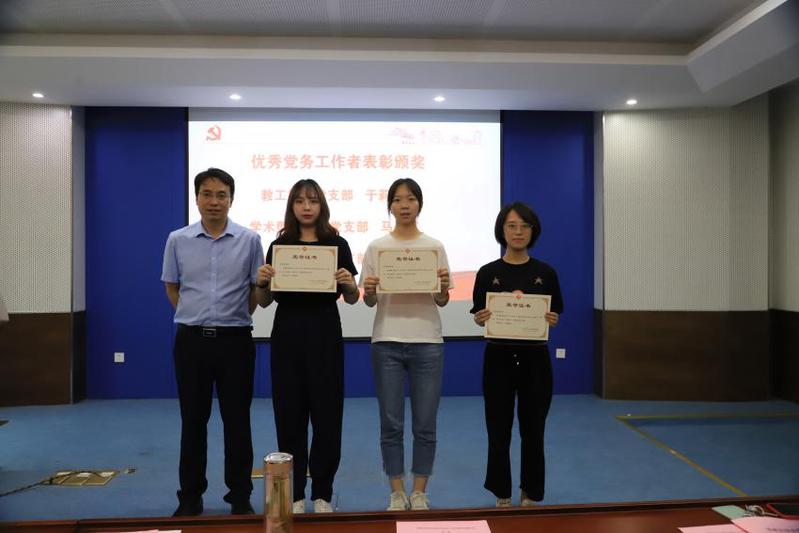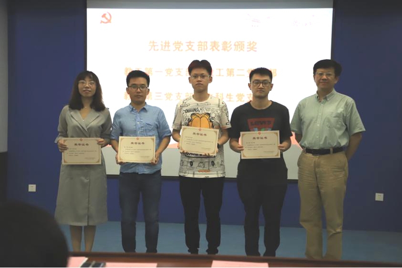 在新党员入党宣誓仪式结束后,学院对2018-2019年度先进党支部、优秀党务工作者、优秀共产党员、最佳当日活动进行表彰,分别由学院院长陈龙、副院长谷鹏、党委委员黄艳凤宣读表彰决定并为其颁奖。